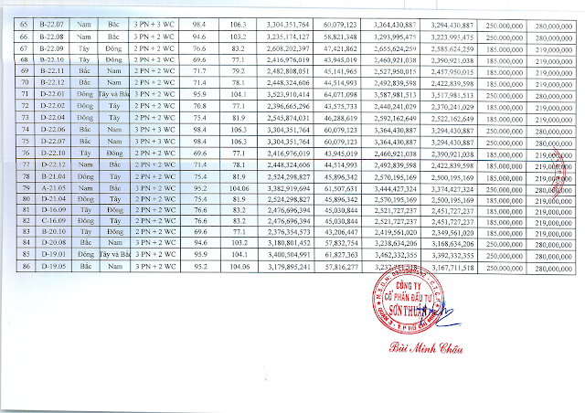 02. Bảng giá 86 căn đợt cuối kèm nội thất.